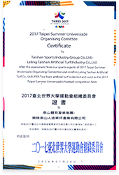 2017台北世界大学运动会组织委员会证书致乐陵星空集团人造草坪产业有限公司
